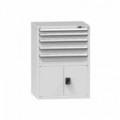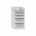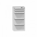 Zásuvková skříň je opatřená mechanismem centrálního zamykání a blokace zásuvek. Zásuvky jsou základním skladovacím prvkem, a proto splňují vysoké požadavky na pevnost a stabilitu. Korpusy zásuvkových skříní tvoří svařenec jednotlivých konstrukčních dílů z kvalitních ocelových plechů. Vnitřní konstrukce korpusů je opatřena perforací po 25 mm. Tuto perforaci využíváme k uchycení vodicích lišt zásuvek, jejich výškovému uspořádání a nakonfigurování požadované zásuvkové sestavy. Přestavování vodicích lišt nebo háčků polic probíhá jednoduše a velice rychle bez použití nástrojů.Zásuvkové skříně ZL4, 442 x 600 x 1215 mm