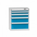 Dílenská skříň se zásuvkami slouží pro uložení nářadí, nástrojů a materiálu na pracovištích. Robustní konstrukce z ocelového plechu s povrchovou úpravou práškovým lakem. Zásuvky na teleskopických pojezdech se 100% výsuvem. Madla s možností umístění štítků, centrální zamykání zásuvek.Dílenské zásuvkové skříně Bott SL-87. výška 160 cm