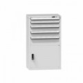 Zásuvková skříň je opatřená mechanismem centrálního zamykání a blokace zásuvek. Zásuvky jsou základním skladovacím prvkem, a proto splňují vysoké požadavky na pevnost a stabilitu. Korpusy zásuvkových skříní tvoří svařenec jednotlivých konstrukčních dílů z kvalitních ocelových plechů. Vnitřní konstrukce korpusů je opatřena perforací po 25 mm. Tuto perforaci využíváme k uchycení vodicích lišt zásuvek, jejich výškovému uspořádání a nakonfigurování požadované zásuvkové sestavy. Přestavování vodicích lišt nebo háčků polic probíhá jednoduše a velice rychle bez použití nástrojů.Zásuvkové skříně ZR1, 884 x 464 x 1215 mm