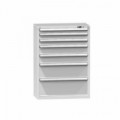 Zásuvková skříň je opatřená mechanismem centrálního zamykání a blokace zásuvek. Zásuvky jsou základním skladovacím prvkem, a proto splňují vysoké požadavky na pevnost a stabilitu. Korpusy zásuvkových skříní tvoří svařenec jednotlivých konstrukčních dílů z kvalitních ocelových plechů. Vnitřní konstrukce korpusů je opatřena perforací po 25 mm. Tuto perforaci využíváme k uchycení vodicích lišt zásuvek, jejich výškovému uspořádání a nakonfigurování požadované zásuvkové sestavy. Přestavování vodicích lišt nebo háčků polic probíhá jednoduše a velice rychle bez použití nástrojů.Zásuvkové skříně ZP6, 731 x 464 x 1215 mm