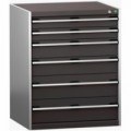 Zásuvkové skříně Bott Cubio se zásuvkami s nosností 200 kg a 100% výsuvy na válečkových ložiskách. Robustní svařovaná ocelová konstrukce s nosností až 1,5 tuny, povrchová úprava práškovým lakem. Systém centrálního zámku i blokace otevření více zásuvek najednou. Ergonomické rukojeti s popisovatelnou lištou, uzamykání cylindrickým zámkem se dvěma klíči.Dílenské zásuvkové skříně Bott Cubio 200, 120 x 80 x 65-75 cm, 7 zásuvek