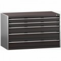 Zásuvkové skříně Bott Cubio se zásuvkami s nosností 75 kg a 100% výsuvy na válečkových ložiskách. Robustní svařovaná ocelová konstrukce s nosností až 1,5 tuny, povrchová úprava práškovým lakem. Systém centrálního zámku i blokace otevření více zásuvek najednou. Ergonomické rukojeti s popisovatelnou lištou, uzamykání cylindrickým zámkem se dvěma klíči.Dílenské zásuvkové skříně Bott Cubio, 60 x 52,5 x 52,5-65 cm, 5 zásuvek