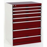Zásuvkové skříně Bott Cubio se zásuvkami s nosností 75 kg a 100% výsuvy na válečkových ložiskách. Robustní svařovaná ocelová konstrukce s nosností až 1,5 tuny, povrchová úprava práškovým lakem. Systém centrálního zámku i blokace otevření více zásuvek najednou. Ergonomické rukojeti s popisovatelnou lištou, uzamykání cylindrickým zámkem se dvěma klíči.Dílenské zásuvkové skříně Bott Cubio, 100 x 80 x 52,5-75 cm, 7 zásuvek