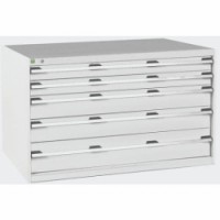 Zásuvkové skříně Bott Cubio se zásuvkami s nosností 75 kg a 100% výsuvy na válečkových ložiskách. Robustní svařovaná ocelová konstrukce s nosností až 1,5 tuny, povrchová úprava práškovým lakem. Systém centrálního zámku i blokace otevření více zásuvek najednou. Ergonomické rukojeti s popisovatelnou lištou, uzamykání cylindrickým zámkem se dvěma klíči.Dílenské zásuvkové skříně Bott Cubio, 80 x 130 x 65-75 cm, 5 zásuvek