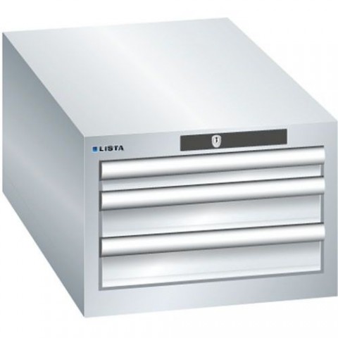 Dílenské zásuvkové skříňe Lista, 2 nebo 3 zásuvky. Zámek na klíč. Cylindrické vložka zámku. Optimální využití díky plnému výsuvu a optimální výšce čela zásuvek. Vynikající ochrana proti prachu, kapalinám a mechanickému opotřebení díky uzavřenému rámu s povrchem odolným proti nárazům a oděru. Systém proti převrátcení, který zabraňuje pádu zásuvky, a individuální zamykání zásuvek. Ochrana proti korozi elektroforetickým imerzním lakováním a stříkáním. Optimalizované úložné prostory a organizace díky dělicímu materiálu LISTA přizpůsobenému každému použití a zásuvkám vybaveným drážkami a perforacemi. Profesionální popisování s popisovacím softwarem LISTA Script a výklopnou úchytkou pro vkládání štítků. Dokonale tichý pohyb díky saně bez příčníku.Dílenské zásuvkové skříně Lista, 2 nebo 3 zásuvky, 411x725x283 mm