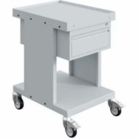 Robustní ocelový vozík s policemi. Povrchová úprava epoxidovým lakem. Snadná manipulace díky polotuhým polymerovým obručím kol.Dílenský vozík na materiál Sofame, 2 patra, 1 zásuvka, 150 kg