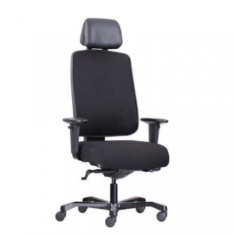 Boston 24/7 patří mezi zátěžové neboli dispečerské židle, jejichž konstrukce je navržená tak, aby si poradila i s prostředím nonstop provozů. Extra vysoký výškově stavitelný zádový opěrák, který je ze zadní strany potažen černou síťovinou a z opěrné části čalouněn černou potahovou látkou. Rozpětí výškového nastavení opěráku je 60 mm. Opěrka hlavy čalouněná hovězí usní pro snadnou údržbu je nastavitelná v rozsahu 0 - 95 mm, s uzamykáním polohy. Sedák s čalounem vysokým 110 mm poskytuje maximální pohodlí pro dlouhodobé sezení, výplň sedáku z vysoce odolné pěny. Synchronní mechanika s pětinásobnou aretací nastavení síly protiváhy v rozpětí hmotnosti 60 - 200 kg s ergonomicky umístěným ovládáním na boku sedáku. Výškově stavitelná bederní opěrka, která zajišťuje zvýšený přítlak zádové opěrky v oblasti bederní páteře. Zvyšuje tak celkový komfort, pocit pohodlí uživatele a tím zlepšuje celkovou ergonomii sezení. Robustní výškově stavitelné loketní opěrky. Dotyková plocha je z měkčeného polyurDispečerská židle Boston 24/7