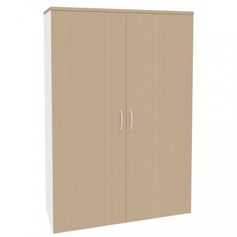 Dřevěná spisová skříň pro ukládání dokumentů a kancelářského materiálu. Dvoukřídlé dveře opatřené rukojeťmi v barvě hliníku. Vybavená čtyřmi výškově nastavitelnými policemi pro přehledné uspořádání. Skříň lze pro vyšší bezpečnost uzamknout. Vyrobená z dřevotřísky.Dřevěná spisová skříň Simmob Quatuor, 180 x 120 x 47 cm, 4 police, bílá/dub