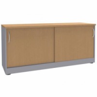 Spisová nízká skříň na dokumenty, prospekty, šanony aj. Vyrobená z dřevotřísky. Střední přepážka děli skříňku na dva samostatné sektory. Oba sektory jsou vybavené jednou policí, které lze výškově nastavit. Postavená na nylonových nožkách s výškou 4 cm a o průměru 5 cm.Dřevěné spisové skříně s posuvnými dveřmi Simmob Quatuor, 2 police, 160 x 72,5 x 47 cm