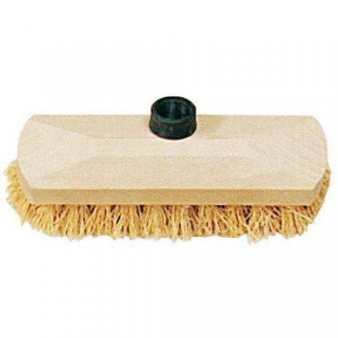 S připevněným plastovým držákem na rukojeť. Dodáváno bez rukojeti.Dřevěný podlahový kartáč Mondelin, bez násady