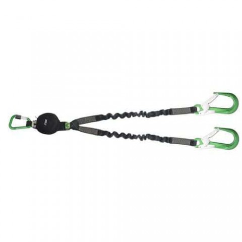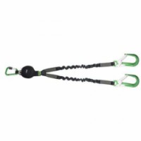 Dvojitá šňůra s polyesterovým elastickým popruhem o šířce 35 mm, speciálně navržená tak, aby odolala ostrým hranám. Tlumič energie z popruhu odolného proti roztržení, který v případě pádu zajistí náraz menší než 6 kN, šířka 45 mm. Smyčky chráněné trubkovým popruhem pro lepší odolnost proti oděru. Kompaktní pohlcovač energie chráněný snadno otevíratelným pouzdrem umožňujícím vnitřní ovládání popruhu pohlcovače.Dvojitý elastický popruh pohlcující energii 1,5 m