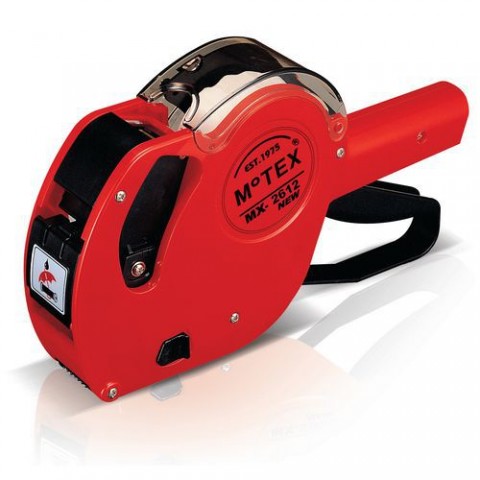 Jednořádkové etiketovací kleště Motex s krytem kotoučku etiket. Etikety jsou potisknutelné max. 9 znaky zobrazujícími cenu, datum nebo jiný číselný údaj. Pro použití v prodejnách a skladech.Etiketovací kleště Motex 2612 (pro etikety Contact, Uni)