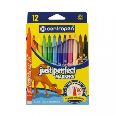 Sada nevysychavých fixů s trojúhelníkovou úchopovou částí, zaručuje lehké, zdravé a příjemné kreslení bez únavy. Jsou naplněny zdravotně nezávadnými, vypratelnými, nevysychavými inkousty, které dovolují nechat popisovače až 60 dnů bez chránítka. Ventilační chránítko. Mix barev. Válcový hrot.Fix CENTROPEN sada 2510/12 barev PERFECT
