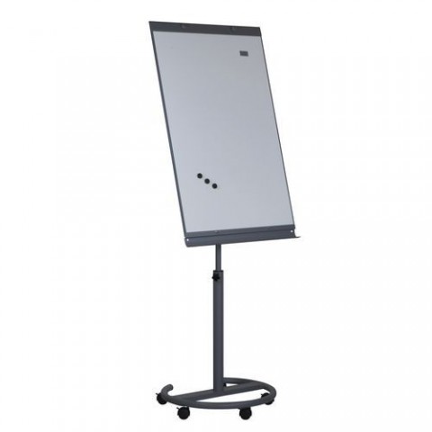 Ekonomická verze mobilního flipchartu s magnetickým povrchem. Plynule nastavitelný až do výšky 190 cm. Možnost natáčení a pojíždění díky kříži s pěti kolečky. Součástí kovové konstrukce je odkládací lišta na popisovače. Deska o rozměrech 100 x 65 cm je vyrobena z lakovaného plechu. Flipchart Economic, mobilní