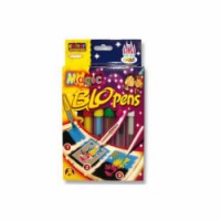 Sada magických foukacích fixů s vnitřní náplní, které jsou určeny na papír. Náplně obsahují zdravotně nezávadný inkoust přebarvitelný zmizíkem. Ventilační chránítko, po použití řádně uzavřít. Balení obsahuje 5 kusů foukacích fixů, 1 klasický zmizík a 8 šablon.Foukací fixy CENTROPEN 1549/4+2 sada Magic T