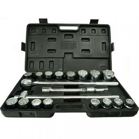 21 dílů Chrom vanadium Matný chrom V PVC kufru 16 x hlavice nástrčná více hranná 19-21-22-23-24-26-27-30-32-34-36-38-41-46-48-50 1 x ráčna přepínací 1 x trhák 2 x prodloužení 100 - 200 mm.Gola sada 3/4 21ks, 19-50mm vícehran GEKO