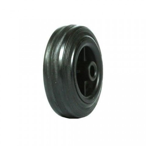 Samostatná kola s černou pryžovou obručí na polypropylenovém disku. Kluzná ložiska. materiál kol: guma průměr kola: 80 - 250 mm šířka kola: 35 - 50 mm nosnost: 80 - 200 kg způsob uchycení: bočním otvorem průměr bočního otvoru: 12 - 20 mm délka náboje: 45 - 60 mm ložiska: kluzná teplotní odolnost -18 až +60 °CGumová pojezdová kola, průměr 80 - 250 mm, kluzná ložiska