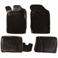 Koberce jsou vyrobeny přesně podle tvaru podlahových ploch konkrétního typu vozidla. Koberce jsou snadno omyvatelné, s rychlou možností vysypání nečistot a snadnou instalací. Vysoce odolná pryž zajišťuje kobercům vysokou pružnost, která zabezpečí při ohýbání (např. při skladování), že se koberce roztáhnou opět do původního tvaru. Výhodou těchto koberců je zvýšený okraj, chránící interiér interiéru vozidla před vysypáním sypkých materiálů či vylitím tekutin, apod. do interiéru vozidla, s odolností vůči prosáknutí olejů, benzínu a částečně také vůči elektrolytu z akumulátorů. Nepříjemnému posunu koberců po podlaze vozidla či shrnování pod pedály účinně zamezí speciální protiskluzové tvarování na spodní straně koberců, které se snadno přichytí k originálnímu čalounění podlahových prostorů.Gumové koberce Renault Symbol II, 2008 SIXTOL