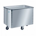 Hliníkový přepravní vozík s objemem 1 050 l a se stabilními zesílenými žebrovanými stěnami. Vozík je odolný vůči korozi, je lehký a snadno udržovatelný. Pohyb zajišťují dvě otočná a dvě pevná kola.Hliníkový přepravní vozík, 1050 l