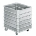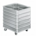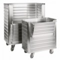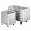 Hliníkový přepravní vozík s objemem 656 l a se stabilními zesílenými žebrovanými stěnami. Vozík je odolný vůči korozi, je lehký a snadno udržovatelný. Pohyb zajišťují dvě otočná a dvě pevná kola.Hliníkový přepravní vozík, 656 l