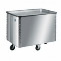 Hliníkový přepravní vozík s objemem 223 l a se stabilními zesílenými žebrovanými stěnami. Vozík je odolný vůči korozi, je lehký a snadno udržovatelný. Pohyb zajišťují dvě otočná a dvě pevná kola.Hliníkový přepravní vozík, 223 l