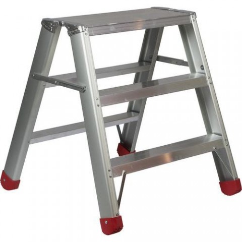 Hliníkové schůdky Patron s plošinou, oboustranné, 2 x 3 stupně