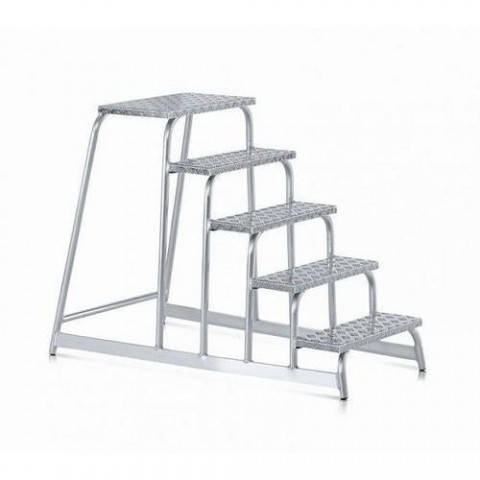 Hliníková pracovní podesta s pěti stupni, vhodná do skladů, archívů nebo obchodů. Rýhované protiskluzové schody a plošina. Vzdálenost mezi jednotlivými stupni je 20 cm. Konce nosných profilů jsou opatřené plastovými patkami.Hliníkové schůdky Zarges s plošinou, 5 stupňů
