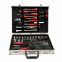 Hliníkový kufr obsahující 51 položek nářadí. Zabezpečení uzavření pomocí číselného kódu.Hliníkový kufr s nářadím, sada 51 kusů nářadí