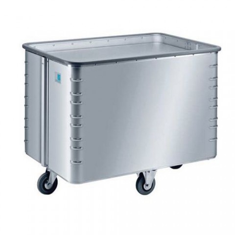 Hliníkový přepravní box s pohyblivým dnem a objemem 260 l. Vozík je vyroben z tvrdých hliníkových slitin odolných proti nárazu a korozi. Dno je vypodložené spirálami z pozinkované oceli, které umožňují postupné klesání dna pod tíhou nákladu. Hrany jsou opatřené plastovými kryty. Pohyb zajišťují dvě otočná a dvě pevná kola. Kola jsou rozložena do tvaru kosočtverce.Hliníkový přepravní vozík s pohyblivým dnem, 260 l