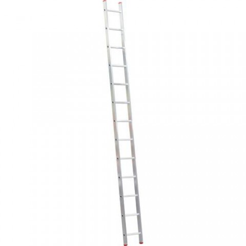 Jednoduchý opěrný žebřík z hliníku s 13 příčkami, určený pro příležitostné používání. Žebřík je opatřen protiskluzovými patkami na nohách. Příčky s bezpečnostním vroubkovaným povrchem. První příčka žebříku je posazena 17 cm nad zemí. Splňuje normu ČSN EN 131 a je opatřen TÜV certifikátem.Hliníkový žebřík HOBBY, 13 příček