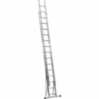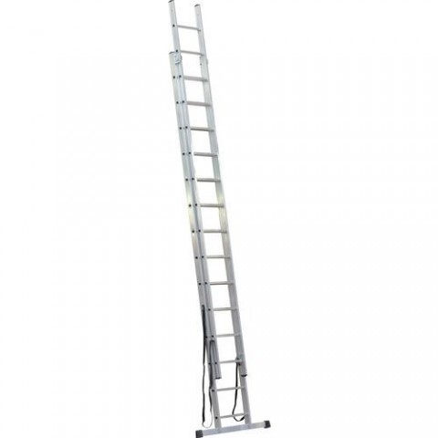Univerzální žebřík ze dvou dílů po čtrnácti příčkách, vhodný pro profesionální užívání. Možnost použít jako štafle nebo jako výsuvný opěrný žebřík. Vyšší bezpečnost zajišťují ochranné napínací pásy a protiskluzové plastové patky. Základna na jedné straně žebříku je pro vyšší stabilitu rozšířená. Splňuje normu ČSN EN 131 a je opatřen TÜV certifikátem.Hliníkový žebřík PROFI, 2 x 14 příček, Alpos Alu