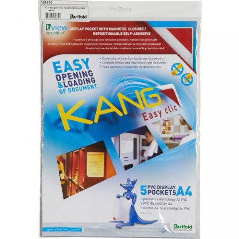 Průhledná informační tabulka A4 slouží k umístění důležitých informací. Vhodná do prostoru, kde mohou být informace často měněny. Po odtržení ochranný pásek drží rámeček na všech hladkých plochách. Nepermanentní lepidlo zaručuje možnost stálého přemisťování tabulky. Pomocí magnetu na rohu kapsy lze snadno tabulku otevřit a zavřít.Informační kapsa Tarifold A4, se samolepicí páskou