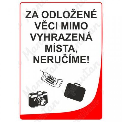 Informační tabulky - Za odložené věci neručíme