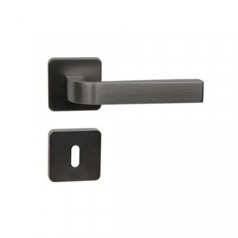 Zamakové kování na čtvercových rozetách s vratnou pružinou klik. Použitý materiál vykazuje vysokou pevnost a odolnost povrchu proti opotřebení. Přesné opracování hran.Interiérová kování Roma.BB