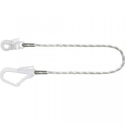 Pletené lano. S jednou ocelovou karabinou s automatickým zámkem a jednou karabinou s automatickým zámkem na lešení. Náprstková poutka pro lepší odolnost proti oděru. Chráněné švy pod průhledným pláštěm, který umožňuje vizuální kontrolu švů.Jednoduché lano s lešenářskou karabinou