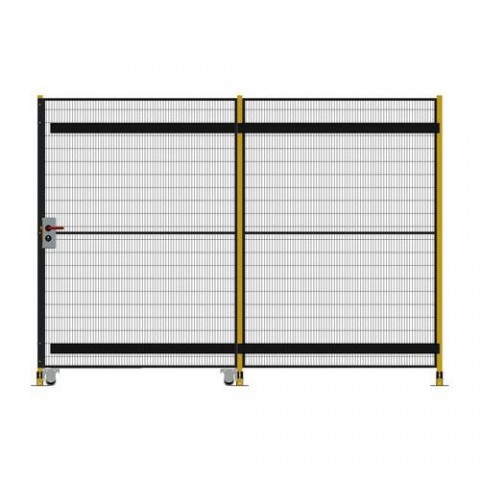 Kompletní jednokřídlé posuvné dveře s cylindrickým zámkem pro systém ochranného oplocení. Cylindrický zámek na klíč umožňuje vstup pouze oprávněným osobám. Teleskopické vedení umožnuje použití dveří s minimálním nárokem na prostor. Bezpečnostní oplocení slouží k zajištění bezpečnosti zaměstnanců a návštěvníků tím, že omezuje přístup do nebezpečných nebo citlivých prostor. Chrání před neoprávněným přístupem osob ke strojům a zařízením, vandalismem a krádežemi. Systém oplocení je navržen a vyroben v souladu s normou EN ISO 14120 a splňuje bezpečnostní požadavky hodnocení rizik.Jednokřídlé posuvné dveře s teleskopickým vedením, cylindrický zámek