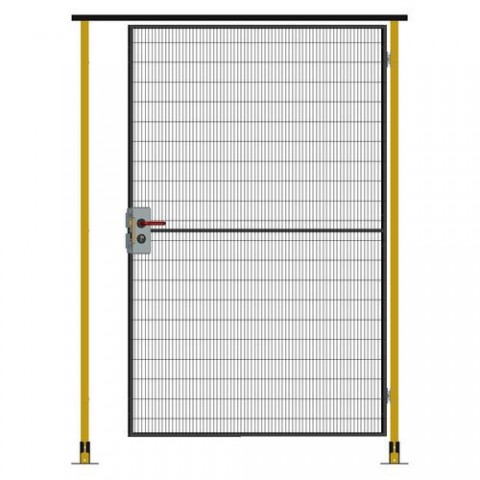 Kompletní jednokřídlé závěsné dveře s cylindrickým zámkem pro systém ochranného oplocení. Cylindrický zámek na klíč umožňuje vstup pouze oprávněným osobám. Klasické dveře s panty jsou vhodným řešením tam, kde je dostatek prostoru. Bezpečnostní oplocení slouží k zajištění bezpečnosti zaměstnanců a návštěvníků tím, že omezuje přístup do nebezpečných nebo citlivých prostor. Chrání před neoprávněným přístupem osob ke strojům a zařízením, vandalismem a krádežemi. Systém oplocení je navržen a vyroben v souladu s normou EN ISO 14120 a splňuje bezpečnostní požadavky hodnocení rizik.Jednokřídlé závěsné dveře, cylindrický zámek