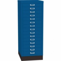 Kartotéka se soklem. Patnáct zásuvek. Slouží k uložení různých dokumentů. barva: šedá, modrá formát: A3 počet zásuvek: 15 výsuv zásuvek: 100% nosnost zásuvky: 10 kg provedení: jednořadé rozměry v x š x h: 94 x 28 x 43 cm vnitřní rozměr zásuvky v x š x h: 4,5 x 30,25 x 42,6 cm materiál: ocelový plech zámek: ne zkompletovánoJednořadé kovové kartotéky A3 Esk, 15 zásuvek