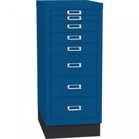 Kovové zásuvkové skříňky s osmi zásuvkami a soklem. barva: šedá, modrá formát: A4 počet zásuvek: 8 výsuv zásuvek: 100% nosnost zásuvky: 5 kg provedení: jednořadé rozměry v x š x h: 67 x 28 x 43 cm vnitřní rozměr zásuvky v x š x h: 9,9 x 23,25 x 37,6 cm materiál: ocelový plech zámek: ne zkompletovánoJednořadé kovové kartotéky A4 Esk, 8 zásuvek