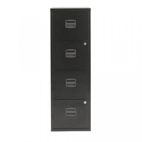 Kartotéky z oceli se čtyřmi zásuvkami. Šuplíky jsou vybaveny kovovým úchytem. Otevírání šuplíků až 80%. Celosvářená jednodílná konstrukce. Určeno pro rozměry A4 složek. Bezpečnostní anti-tip systém. Pro každý zámek jsou dodávány dva klíče.Jednořadé kovové kartotéky A4 Tees, 4 zásuvky