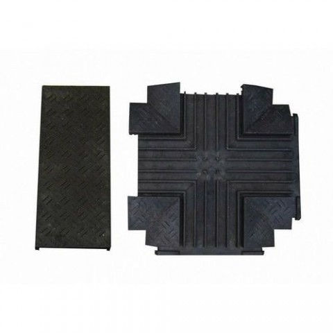 Kabelový přejezd ve tvaru křižovatky s horním víkem k ochraně kabelů, hadic a trubek, které je nutné vést přes vozovku. Vhodné k použití ve výrobních provozech, pozemních komunikacích, při pořádání kulturních akcí a podobně. Spojení jednotlivých dílů pomocí jednoduchých zámků na konci mostu. barva: černá, žlutá v x š x h: 60 x 770 x 770 mm rozměry otvorů: 35 x 35 mm (8 x); 40 x 35 mm (2 x) počet otvorů: 10 nosnost: 7 000 kg hmotnost: 36 kg špatná hořlavost, protiskluzový povrchKabelové mosty s krytem, křižovatka