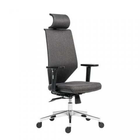 Celočalouněná kancelářská židle Edge se synchronní mechanikou s několikanásobnou aretací a nastavením síly protiváhy centrálním šroubem. Sedák,opěrák a hlavová opěrka jsou čalouněné tmavě šedou potahovou látkou. Židle má úhlově nastavitelnou hlavovou opěrku a také opěrák s výškově stavitelnou bederní výztuhou. Nastavení výšky opěráku je pomocí systému UP-DOWN. Chromový pětiramenný kříž s kolečky na všechny typy podlah. Průměr koleček je 60 mm. Součástí židle je hloubkově stavitelný sedák, který ocení vyšší osoby. Výškově stavitelné područky s měkkou dotykovou plochou. Židle vhodná pro celodenní sezení.Kacelářská židle Edge, šedá