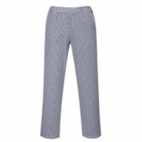 Kalhoty ze 100% bavlny vhodné i pro práci v teplém prostředí. Přirozeně absorbují pot zůstávají stále pohodlné. Napůl elastický pas Zapínání na suchý zip Zadní kapsy Boční kapsy 3 kapsy 100% bavlna Unisex vzhledKalhoty Barnet Chefs, černá/bílá