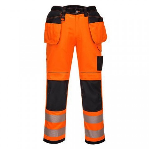 Inovativní Hi-Vis strečové kalhoty využívající vysoce výkonnou oboustrannou strečovou tkaninu pro maximální rozsah pohybu při práci. Mezi chytré funkce patří multifunkční holster kapsy kapsy na kolenou s horním plněním a snadno přístupná stehenní kapsa pro bezpečné uložení telefonu klíčů a nástrojů. Zesílení z oxfordské textilie v klíčových bodech oděru a trojité prošívání pro maximální odolnost. Napůl elastický pas Trojité švy Holster kapsy na nářadí Vrchem plněné kapsy na kolenní vložky Kapsa na mobil 12 kapes Reflexní páska HiVixTex Pro Vyztužené panely Povrchová úprava Texpel Splach Skryté ID pouzdro na kapse Dvoucestná keprová strečová látkaKalhoty Holster PW3 Hi-Vis Stretch, černá/oranžová