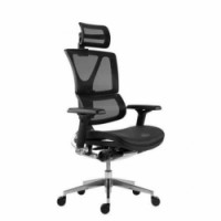 Kancelářská židle Korina se sítí na sedáku, opěradle a podhlavníku. Synchronní mechanismus s aretací v 10 pozicích a nastavením síly protiváhy. Nastavení výšky opěráku ve 4 pozicích systémem up-down. Možnost nastavení hloubky sedáku. 4D výškově nastavitelné područky s měkkou dotykovou plochou nastavitelnou podélně, úhlově a do šířky. Součástí je flexibilní bederní opěrka. Kolečka o průměru 60 mm jsou univerzálně použitelná pro všechny povrchy. Hliníkový leštěný kříž o průměru 700 mm.Kancelářská židle Korina