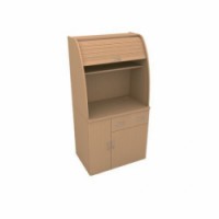 Kuchyně do kanceláří se dvěma policemi a plastovou roletou v požadovaném dezénu. dezén: buk, třešeň rozměry v x š x h: 180 x 90 x 60 cm materiál: laminovaná dřevotříska počet polic: 2 počet zásuvek: 1 ABS hrany, desky tloušťky 18 mm, vyrovnávací šrouby, dodáváno v demontovaném stavu (spojovací materiál součástí balení)Kancelářské kuchyňky
