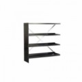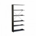 Přístavbové regály nabízí vhodné řešení pro prezentaci materiálu ve formátu A4. Policové regály se skládají z konstrukce z ocelového plechu, která je povrchově upravena práškovým lakem. Kombinací základních a přístavbových regálů lze vytvořit sestavy podle potřeb interiéru.Kovové regály, přístavbové, 198 x 100 x 30 - 40 cm, 5 polic, černé