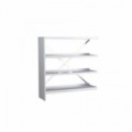 Kancelářské regály pro lehké až střední zatížení Robustní s dvojitým nýtovaným upevněním kolejnic a 1 výztuhou na úroveň pod horní deskou. Odolný bílý epoxidový nátěr.Kovový regál Rapid 3 office, 1800x900x400, 1200 kg, 4 dřevovláknité police