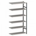 Přístavbové kovové regály nabízí vhodné řešení pro prezentaci a uložení materiálu ve formátu A4. Policové regály se skládají z konstrukce z ocelového plechu, která je povrchově upravena práškovým lakem. Díky pevným bočním stěnám a křížovému zavětrování disponují tyto regály vysokou stabilitou a tuhostí. Součástí regálů je pět polic s nosností 60 kg stavitelných v rastru 30 mm. Kombinací základních a přístavbových regálů lze vytvořit sestavy podle potřeb interiéru. Regály jsou dodávány v rozloženém stavu. rozměry v x š x h: 198 x 100 x 30 - 40 cm nosnost na polici: 60 kg materiál konstrukce: ocelový plech materiál polic: ocelový plech počet polic: 5 ks typ: přístavbový barva konstrukce: šedá RAL 7035 barva polic: šedá RAL 7035 balení: 1 ks stavitelné police v rastru 30 mm, povrchová úprava práškovým lakem, dodáváno v demontovaném stavu, snadná montážKovové regály, přístavbové, 198 x 100 x 30 - 40 cm, 5 polic, šedé