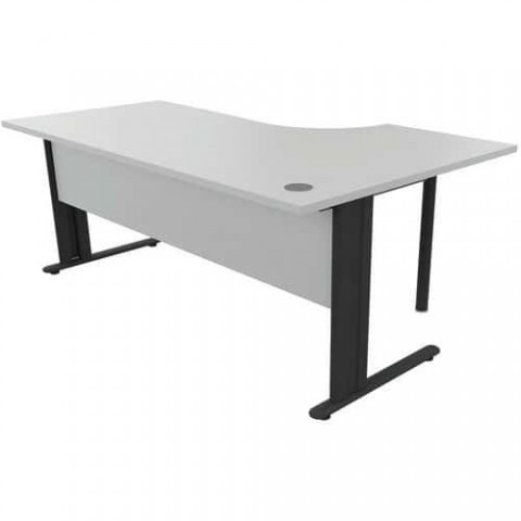 Psací stoly Manutan Expert s deskou z melaminového panelu o tloušťce 25 mm a s kovovým podnožím. Pravé či levé provedení stolu. Antireflexní úprava proti poškrábání. Deska stolu má otvor o průměru 80 mm pro vedení kabelů.Kancelářské stoly Manutan Expert, 72 x 160 - 180 x 110 cm, pravé/levé provedení, světle šedá